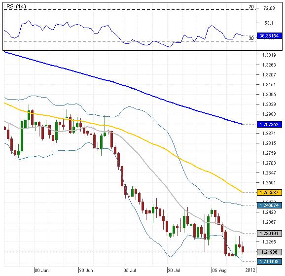 Yesterday EUR/CAD failed to advance further, thus a small setback happened, and now the EUR/CAD currency pair has renewed its bearish tendency and the price is heading towards the lower Bollinger band at 1.2141, from where it might bounce back. However, if it fails to stop the dip, then next support at 1.2103 (monthly S1) will probably bring some bullish impulse. Moreover, RSI indicator remains neutral, although it has made a slight move towards the over-sold area.