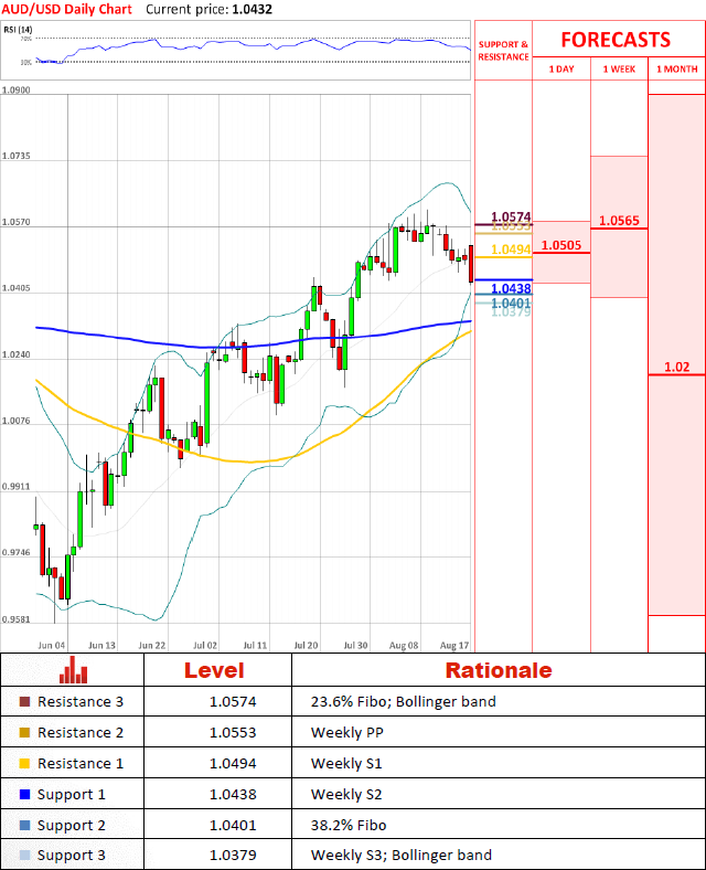 Pair dropped to the lowest level in 4 weeks. However, this might be just a short lived price correction as pair has hit 1.0438 which proved to be a strong support level for the pair recently and the outlook for the pair remains positive in the medium term.