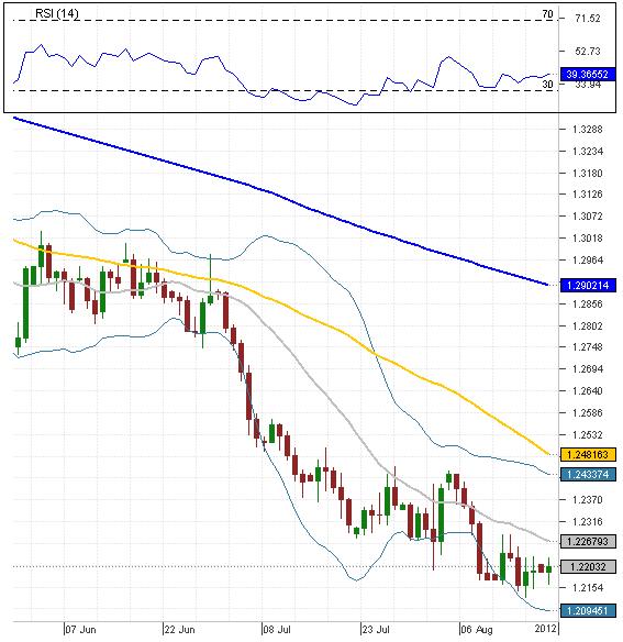 OutlookYesterday's bearish reaction has failed to continue, and today the EUR/CAD currency pair has already managed to cross the weekly PP at 1.2201, and the price is slowly approaching the 20-day SMA at 1.2267, which might slow down the prevailing uptrend, however, if it is broken, then next resistance at 1.2357 (weekly R2) will probably bring some bearish impetus. In addition, RSI indicator shows neutral signal, and it is expected to remain unchanged in the nearest future.