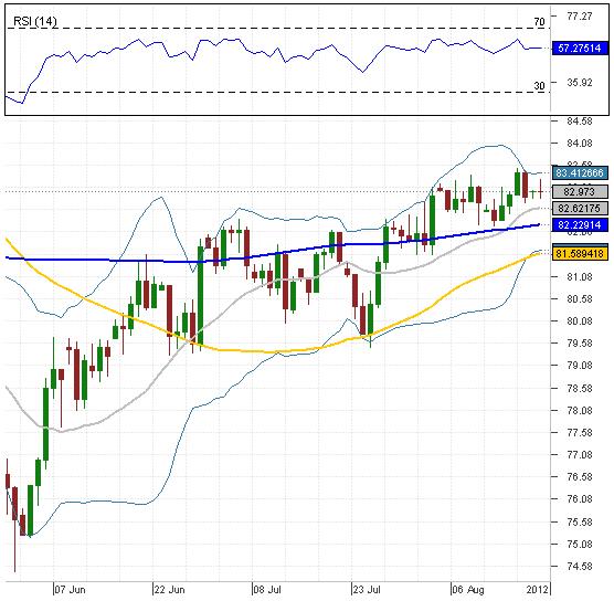 OutlookYesterday's bullish trend failed to advance even further, and today the bearish correction takes place. As for now, the AUD/JPY currency couple confronts the weekly PP at 82.90, which might slow down the downtrend, however, if it is breached, then next support at 82.62 (20-day SMA) might be the reversal point for the prevailing tendency. Moreover, RSI indicator remains neutral, therefore the currency pair is neither over-bought nor over-sold at the particular moment.