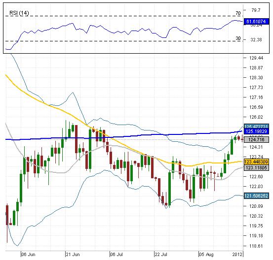 OutlookThe bearish correction, which started on August 19th, continues its movement downwards, and GBP/JPY is gradually moving towards the weekly PP at 124.01, which is very likely to bring some bullish momentum, however, if it fails to stop the downtrend, then the price might reach the 55-day SMA at 123.44, which is expected to change the prevailing trend. Additionally, RSI indicator shows neutral signal, and present resistances are at 124.97, 125.19 and 125.47, and so far there are no signs that they might be breached.