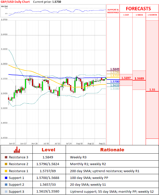 "There should be good short-term support at $1.5640, and with an upward revision in Q2 GDP likely later in the week, we would be wary of getting negative on sterling"
