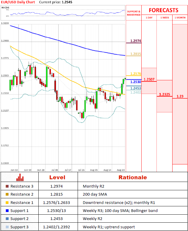 EUR/USD continuously refuses to submit to a bearish outlook and has broken yet another resistance (1.2513/30), which was supposed to contain the current rally of the pair. Now the currency couple faces a combination of two downtrend resistance lines that will attempt to halt the advancement once the price comes into a range between 1.2576/1.2633.
