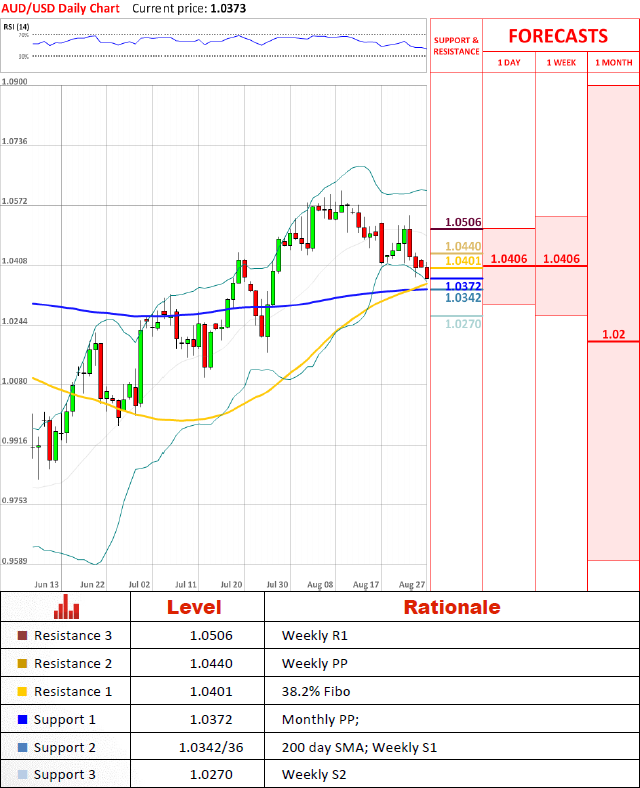 Pair continues to depreciate and is set to test 1.0342/36, eventually dropping to 200 day SMA during this week which should push the pair back up to monthly pivot point at 1.0372.