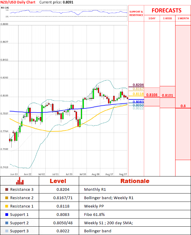 The bearish trend, which started on August 22nd, managed to continue, and today the GBP/JPY currency couple is slowly moving towards the 20-day SMA at 123.76, which might slow down the downtrend. In case it fails to stop the prevailing movement downwards, then the price might reach the 55-day SMA at 123.42, which in turn is very likely to bring