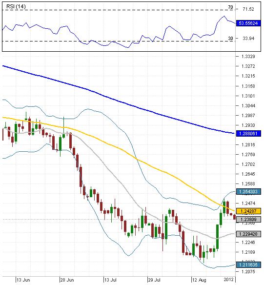 The downtrend, which started two days ago, managed to continue, and today the price confronts the weekly PP at 1.2355, which might slow down the prevailing tendency downwards. In case it fails to stop the movement downwards, then next support at 1.2294 (20-day SMA) is very likely to reverse the direction of the present movement. Additionally, RSI indicator shows neutral signal, and current resistances are at 1.2428, 1.2498 and 1.2543, and they seem to be secure at the particular moment.