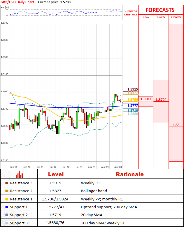 EUR/USD is slowly eroding the nearest support area at 1.2485/63, violation of which will confirm bearish intentions of the pair and jeopardise subsequent levels at 1.2393/37 and 1.2210/1.2168. Nevertheless, since the downward momentum is not yet strong enough, the pair may be a subject to a rally up to 1.2556/1.2633, but is expected to be stopped there.