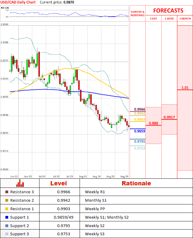 Pair continues to depreciate and is trying to breach 0.985 today. Although pairs outlook is neutral, but technical indicators support possibility of further depreciation of the pair, which is very likely as in 50 pip range below 0.985 mark there are no significant support levels.