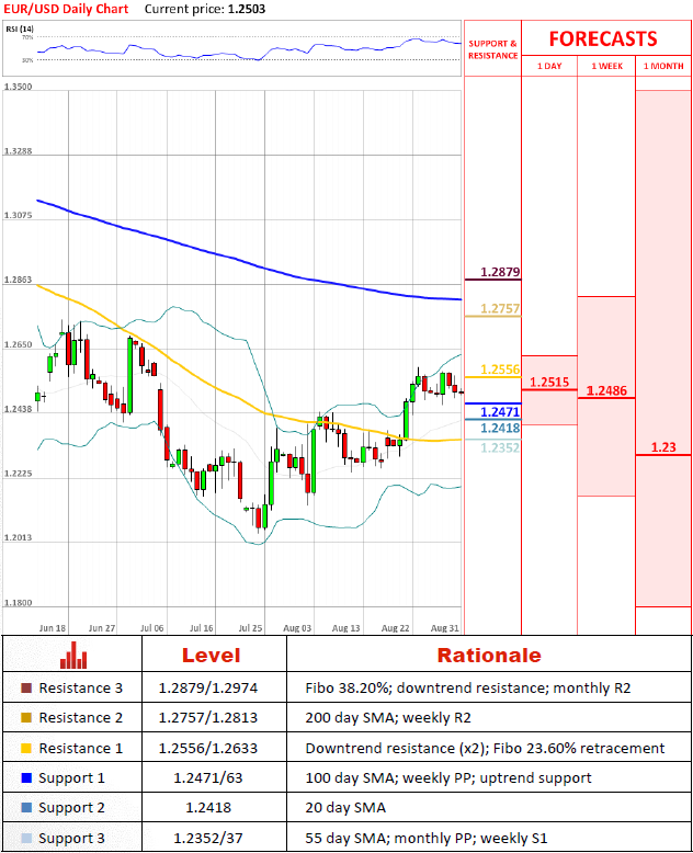 The effect of proximity to a major downward sloping trendline comes into play, though the market is still in no hurry to sell the Euro at the moment. Nonetheless, 1.2556/1.2633 should cap the pair until it commences a full-blown decline. The initial support lies at 1.2471/63 and is followed by 1.2418, breach of which will expose a more notable level at 1.2352/37.