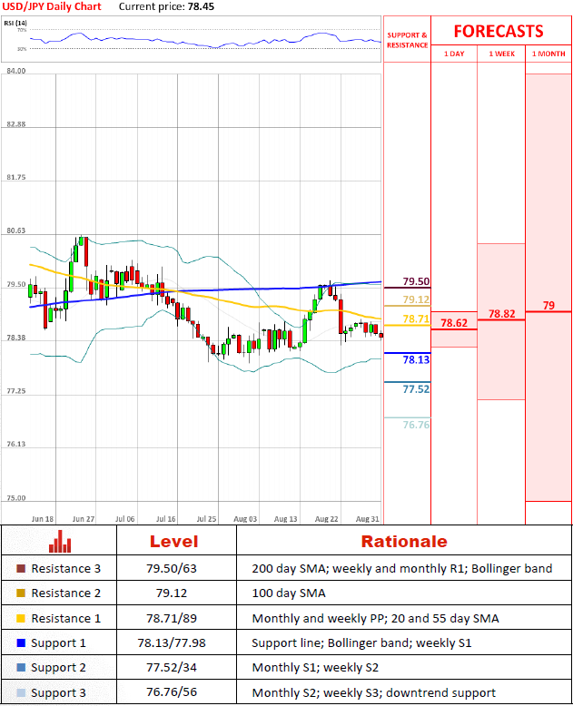 After several endeavours to overcome 78.71/89 USD/JPY has finally given in and is currently headed towards a strong support at 78.13/77.98, which may provide a reason for the pair to step up despite some of the resistances situated overhead. Aside from the mentioned level at 78.71/89, 79.50/63 is also capable of halting appreciation of the U.S. Dollar in the mid-term.
