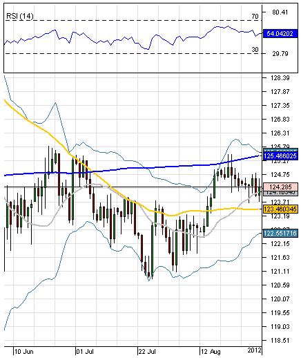 OutlookYesterday's bearish reaction failed to continue, and today GBP/JPY experiences a significant bullish reaction. The price has already managed to cross the 20-day SMA at 124.10, and now the currency couple is slowly moving towards the weekly PP at 124.66, which might slow down the rally. In case it fails to reverse the prevailing tendency, then next resistance at 124.97 (monthly R1) is very likely to change the direction of the current movement upwards. In addition, RSI indicator shows neutral signal, and it is not expected to change in the nearest future.