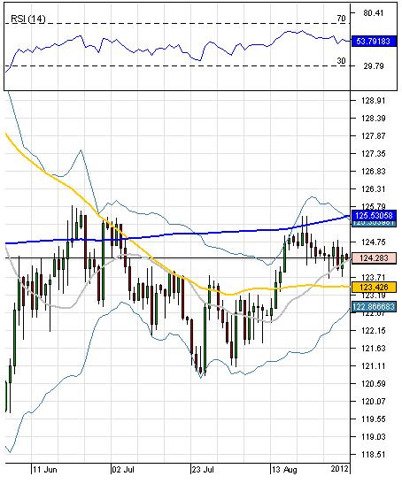 OutlookThe bullish correction, which occurred on September 2nd, did not manage to last long, as today the GBP/JPY currency pair follows a bearish trend, and the price has already managed to overcome the 20-day SMA at 124.25, and now the currency couple is slowly heading towards the monthly PP at 123.64, which will probably bring some bullish impulse. In case it fails to stop the prevailing movement downwards, then the price might reach the 55-day SMA at 123.42, which in turn is very likely to reverse current bearish tendency. In addition, RSI indicator shows neutral signal, therefore the currency pair is neither over-bought nor over-sold at the particular moment.