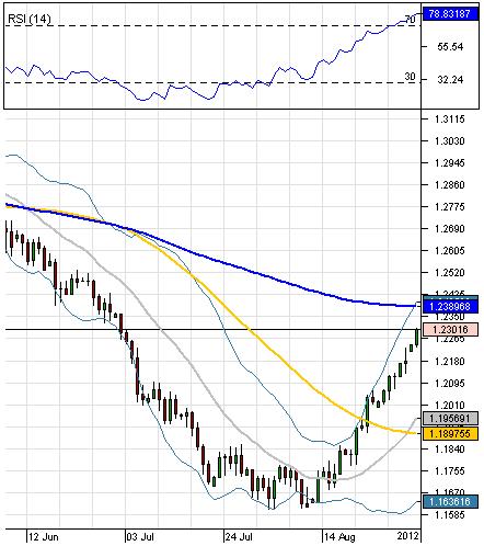 OutlookThe bullish tendency, which started on August 30th, successfully managed to advance even further, and now EUR/AUD is about to test the weekly R1 at 1.2317, which might slow down the rally. In case it is breached, then the currency couple might reach the upper Bollinger band at 1.2405, which in turn will probably bring some bearish momentum. Additionally, RSI indicator shows a strong sell signal, therefore supporting the potential trend reversal. Nevertheless, present supports are at 1.2164, 1.2088 and 1.2004, and so far there are no signs that they might be broken.