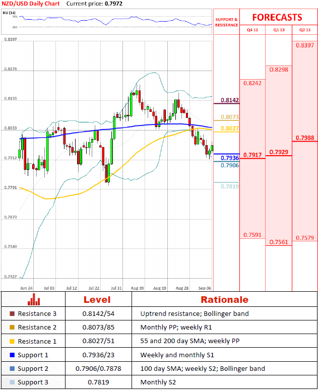 NZD/USD is headed towards 0.8027/51, as no other resistance below it currently possesses a threat to persisting bullish tendency. Nevertheless, the 55 day SMA, in conjunction with the 200 day SMA, is not anticipated to give in and allow reversal, on the contrary, it is supposed to enforce continuation of a decline started on August 7.