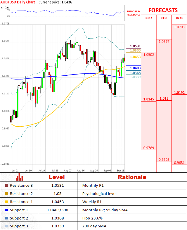 Pair did not managed to hold above 1.05 and it seems we will se a bearish correction which was anticipated by market participants for some time now. It is likely drop will be rather sharp, but support levels around 1.04 should hold on pair there for some time.