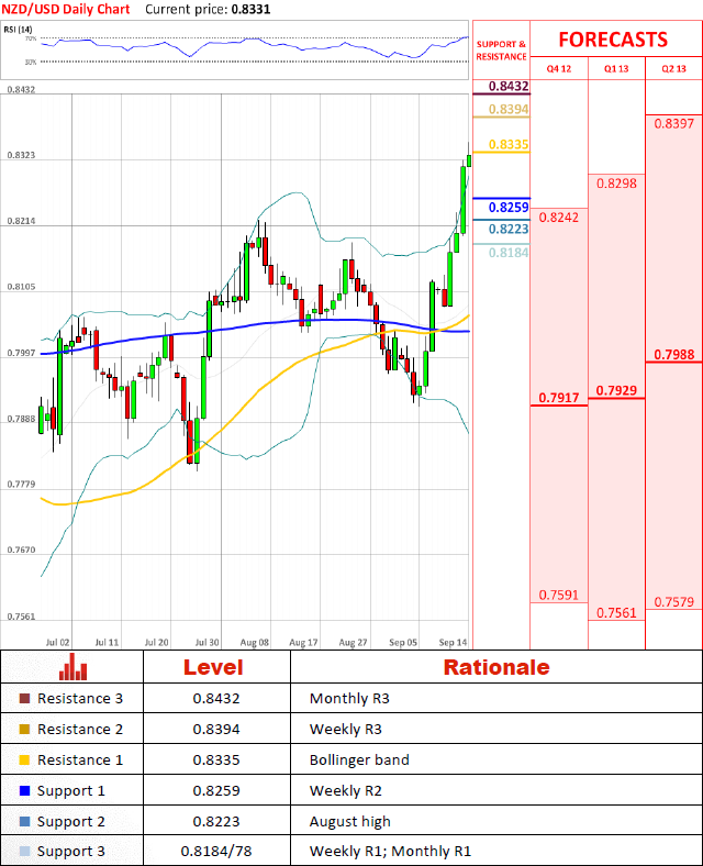 "The kiwi is standing in front of a freight train at the moment. […] The kiwi did quite a lot of work between 83 and 84 US cents and there's quite strong resistance there."