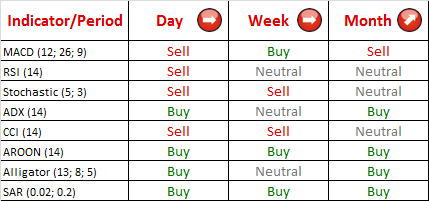 Yesterday's bullish advance successfully managed to continue, and today the XAU/USD exchange rate experiences another small bullish correction. As for now the price confronts the upper Bollinger band at 1777, which is expected to reverse the prevailing tendency upwards, however, if is fails to slow down the uptrend, then next resistance at 1813 (weekly R3) is likely to bring some bearish impulse. Additionally, the indicator outlook remains neutral, therefore no significant trend reversals are expected in the nearest future.