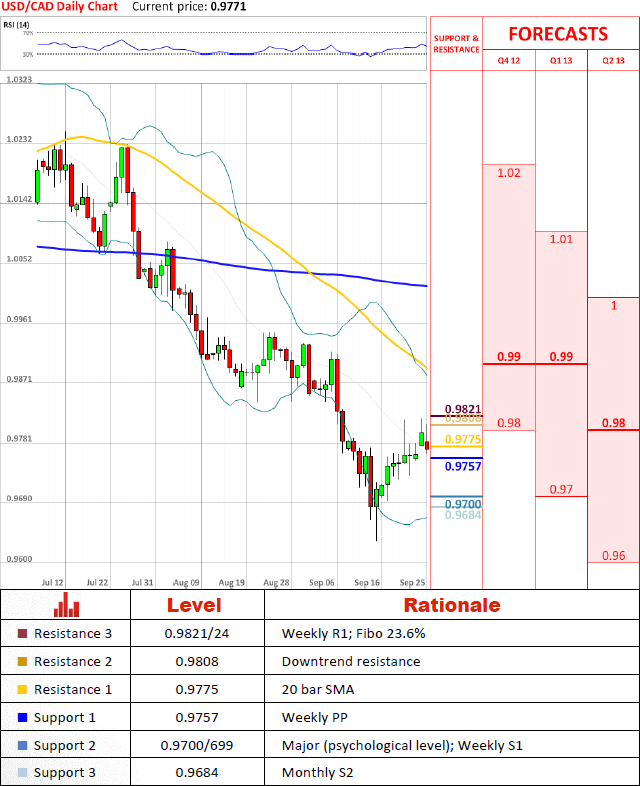 Pair lost all of it's yesterdays gains after rebounding from downtrend resistance (connects 2nd of August and 5th of September highs) at 0.9808. Although outlook on the pair is somewhat neutral, is likely it will pick up again as market sentiment seem to be the main driver behind it at the moment.
