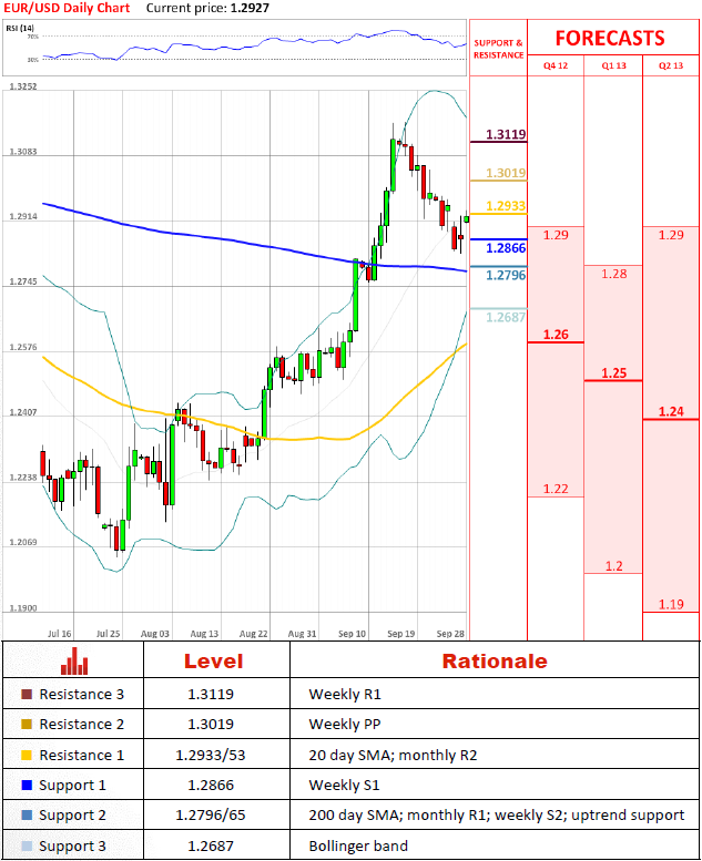 While resistance at 1.2933/53 is slowly being eroded, we may expect extension of the currency rally. In the medium term EUR/USD preserves potential to go as high as 1.3371, where it is going to confront a significant downtrend resistance line. Prior to that, however, the pair will have to overcome 1.3019 and 1.3119. In the meantime, dips are to be contained by 1.2866 and 1.2796/65.