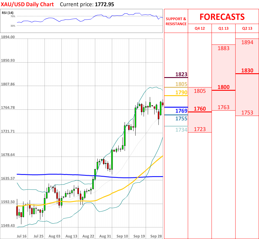 OutlookYesterday's bullish correction failed to continue, as today the XAU/USD exchange rate experienced a slight bearish reaction. As for now, the price is about to test the weekly PP at 1769, however, if it fails to stop the prevailing movement downwards, then the exchange rate might reach the 20-day SMA, which in turn is expected to reverse the current downtrend. In addition, the overall indicator outlook shows a buy signal, therefore the interim bullish trend is expected to continue in the nearest future.