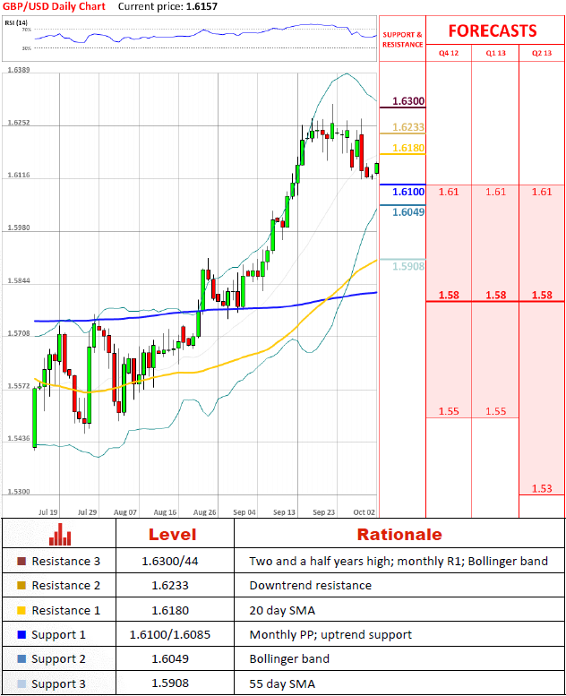 GBP/USD appears to be willing to challenge 1.6233 once again, given that an uptrend support at 1.6100/1.6085 withstood downward push and short-term indicators point to the upside. However, the rally should be capped at 1.6300/44, even if the price does close above 1.6233, since in the long run the currency couple is deemed to be bearish.