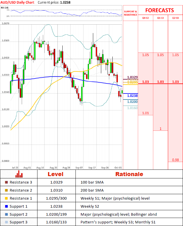 It becomes evident pair wont manage to breach Double Top (peaks on  9th of August and 14th of September) support at 1.0160 and Triple Top or Head and Shoulders pattern formation becomes much more likely. However, due to inconclusive signals coming from technical indicators downside risk remains significant.