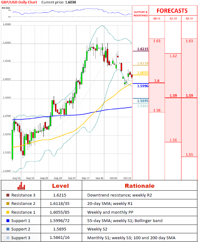 Following a shallow upward rally due to short covering, bears have regained control of GBP/USD's direction. While the initial two supports, at 1.5996/72 and 1.5895, are highly unlikely to pose a serious threat to the current momentum, 1.5861/16 may prove to be a formidable area. Rallies, in the meantime, are to be contained by resistances at 1.6055/85 and 1.6118/35.