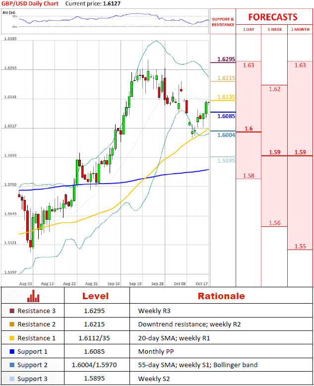GBP/USD keeps a slow pace of increase and yesterday approached a 1.6085 level and currently fluctuates in a 1.6112/35 zone, where the 20-day SMA and a weekly R1 lie. Situation on this currency pair is very vague, as price stays in a correction zone among many support levels and does not show any stronger impetus to any side. RSI also supports this idea with a value of 55.05 and forces to keep away from this currency pair just till more concrete signals will be received.