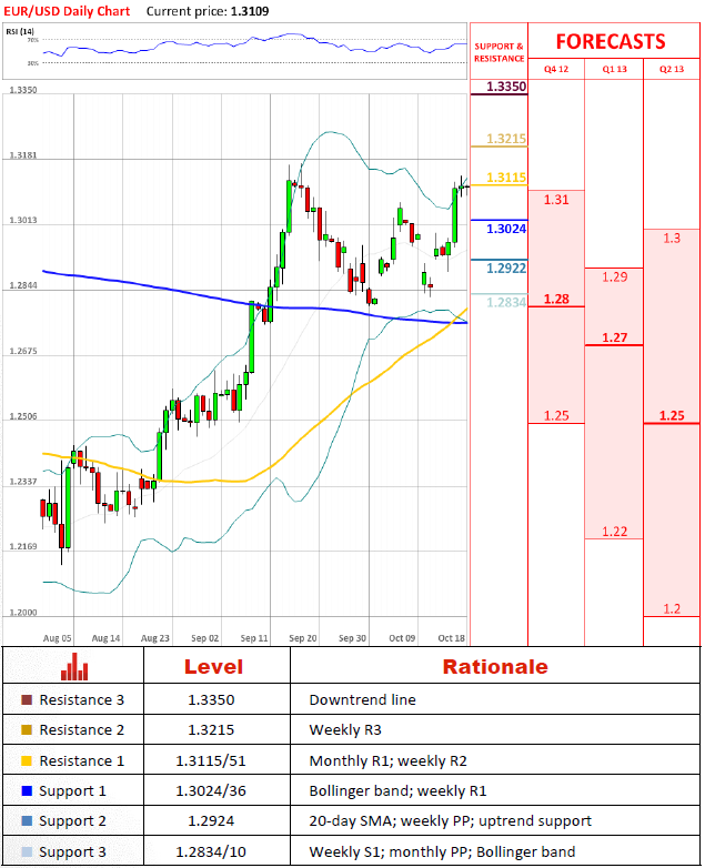 EUR/USD pair consolidated during yesterday's trading session, which also showed that the previous high's resistance zone at 1.3100/30 is strong enough to hold a new upside impetus. Although the price stays in a shadow of the previous high, but larger time frames still remain powerful to push the price higher, without turning indicators in an oversold zone.