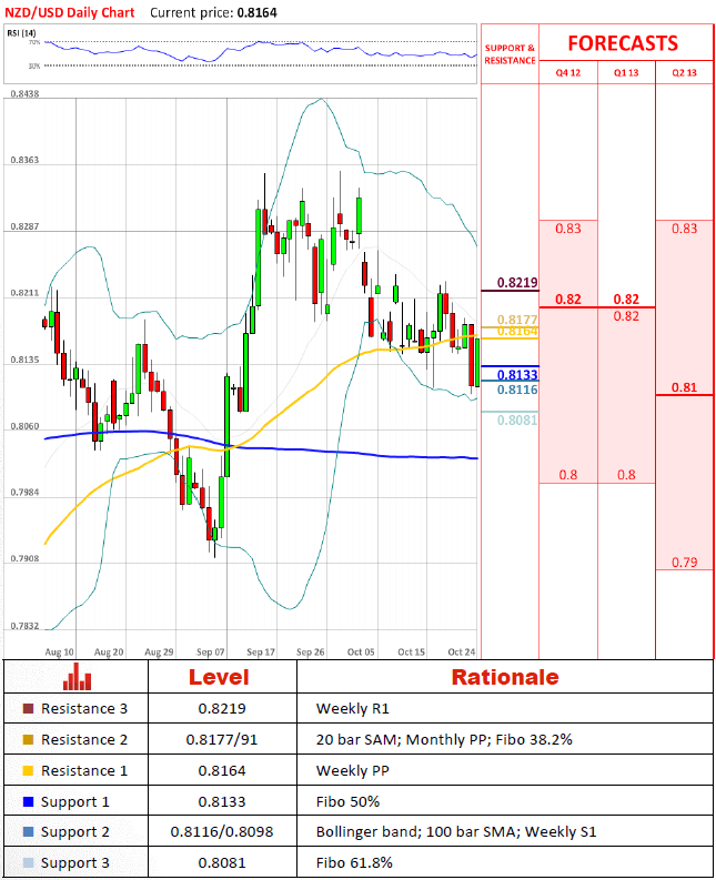 After depreciation 70 pips pair did no manage to breach 0.8116/0.8098 are where it receiver strong bullish impetus and at the moment is testing weekly pivot (PP) at 0.8164. This level might provide some resistance, but should not be hard of a task for pair making 0.8177/81 are the next target, which will be much tougher target.
