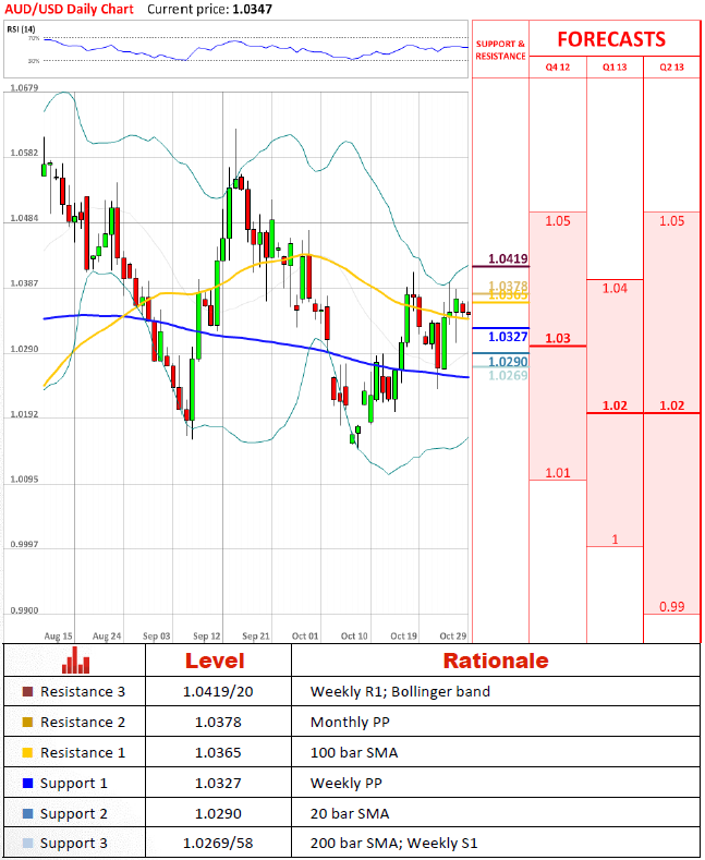 Pair did not manage to brake 100 bar SMA boundaries and is posing for a serious dip while being supported only by weekly pivot (PP). Pair should depreciate some more, with next serious stop being at 1.03 where we should find 20 bar SMA once pair gets there.