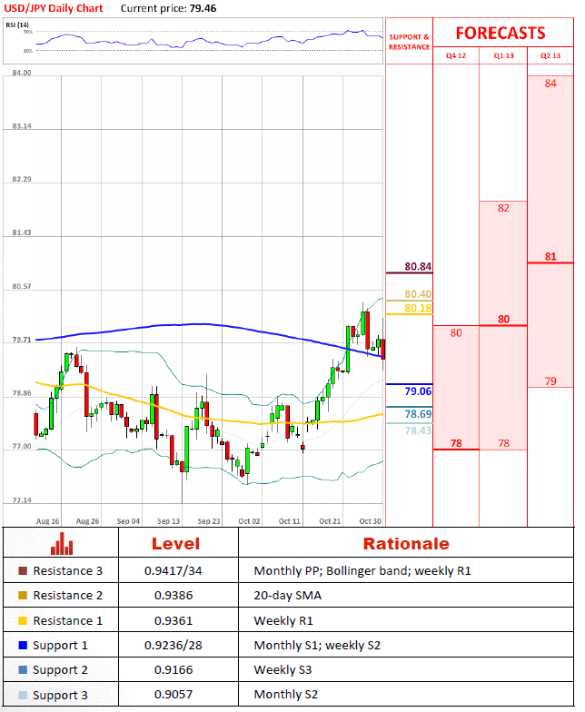 USD/CHF pair loses its moving momentum and today the price has bounced down from a 93.61 level, also touching the 55-day SMA at 93.75. As the price eases its appreciation pace, we might expect some correction till near support levels around 0.9330, the 20-day SMA and weekly PP. After this the price might surge and check 0.94 level properly.