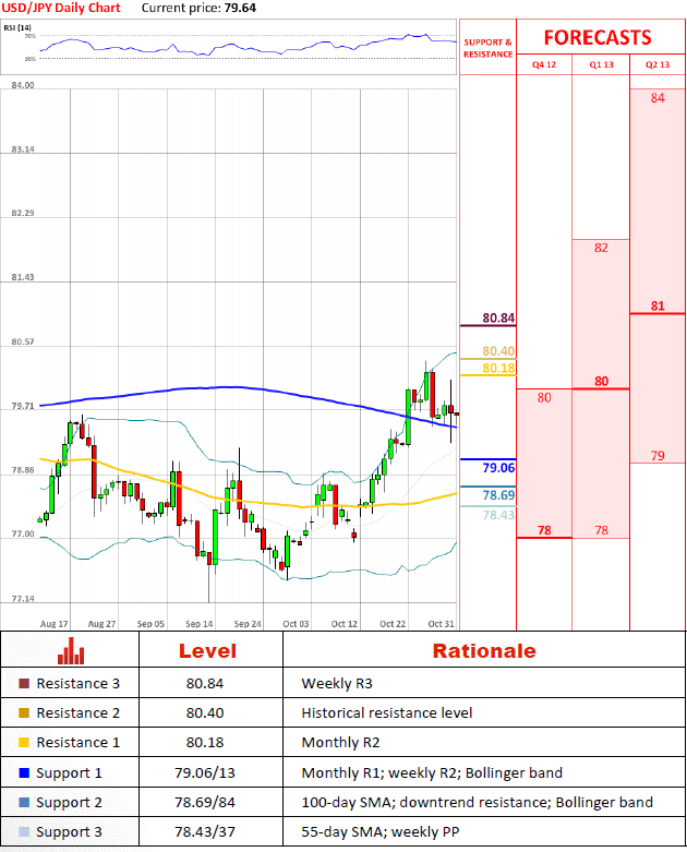 As yesterday USD/JPY pair experienced a spike down after the Japanese central bank decision on easing policy, the price has retreated and closed just above the 200-day SMA level. Today the prices continues decrease and approaches same level at 79.61. If this movement is successful, than we might expect a further price decrease and 79.07/12 level testing.