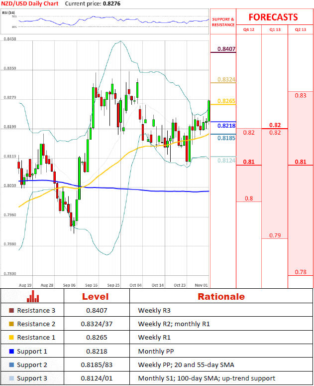 Even though the candle has not yet been completely formed, looks like bulls have finally taken control of the currency pair after a lull. Technical indicators too point to the upside. The nearest resistance that may find itself under a threat of being breached is at 0.8265, whereas 0.8324/37 promises to be a more serious obstacle. Supports at 0.8218 and 0.8185/83, on the other hand, should limit near-term dips.