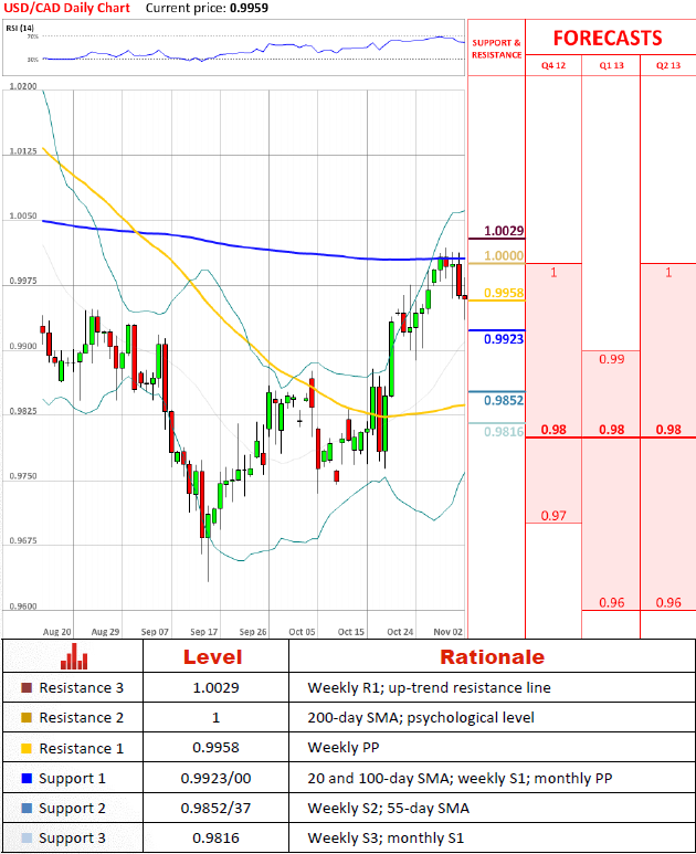 The 200-day SMA did not permit development of an up leg and therefore initiated a bearish correction. Support at 0.9958 has already gave in, exposing 0.9923/00, which in turn may prompt buyers to activate and drive the price back to parity and possibly even higher. Technical indicators for now are mixed, adding to obscurity surrounding the near-term outlook.