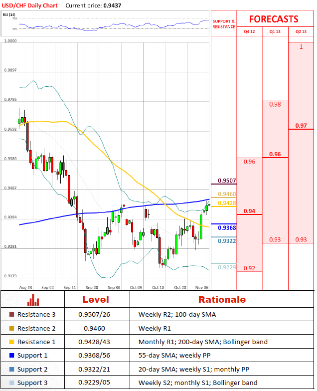 - Cameron Peacock, IG (based on Rueters)Pair's OutlookUSD/CHF pair's pace of appreciation slows down, as the price is approaching a 0.9443 level , where the 200-day SMA and the upper Bollinger line go. However, it is very hard to say, how the price will continue to move from this level, as indicators do not give an overbought signal. Current resistance levels were historically significant and reliable, thus they are expected to stop a price increase.