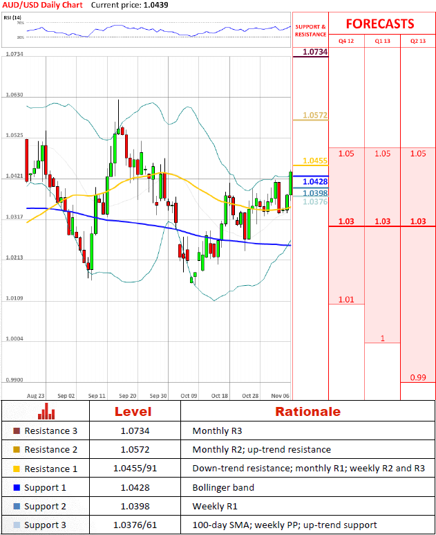 As suspected, bulls took control of the price, advancement of which continues to accelerate. Nevertheless, AUD/USD is dangerously close to a dense resistance zone that stretches from 1.0455 up to 1.0491 and it is expected to prevent extension of the current rally. If this is not the case, then 1.0572 will be the next goal, although technical indicators do not support such scenario and remain largely neutral.