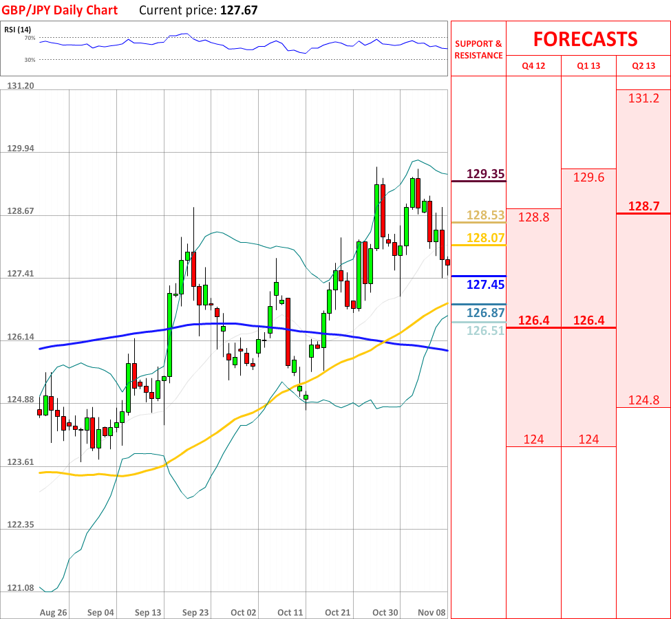 The bearish trend, which started yesterday, has successfully managed to continue, as today the GBP/JPY currency pair experienced a slight bearish reaction, and at the particular moment the currency couple is gradually heading towards the weekly S1 at 127.45, which is expected to slow down the downtrend. In case it is breached, then the currency pair might reach the 55-day SMA at 126.87, which in turn is very likely to change the direction of the current movement downwards. Additionally, the overall indicator outlook is bullish, therefore supporting the potential trend reversal in the nearest future.