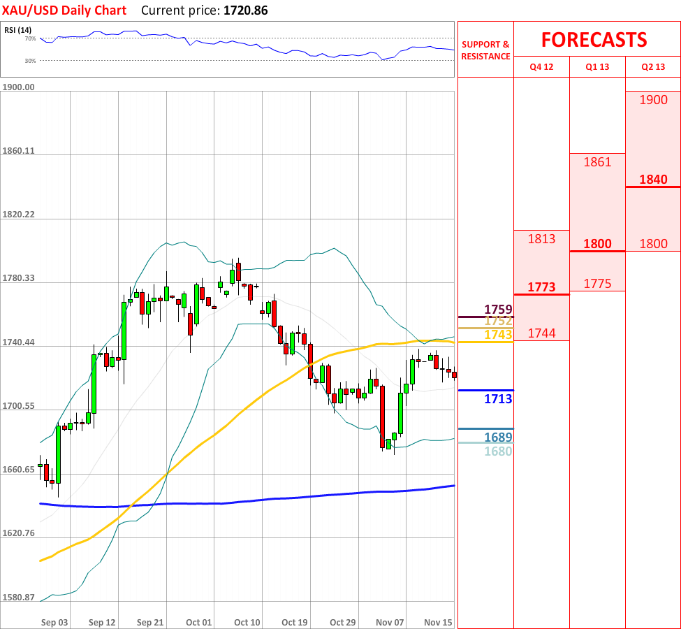 The interim downtrend, which started three days ago, has successfully managed to continue, as today the XAU/USD exchange rate experienced another consequent movement downwards, therefore supporting the current tendency. As for now, the price is facing the 20-day SMA at 1713, which might bring some bullish impetus, however, if it is breached, then the exchange rate will probably reach the lower Bollinger band at 1689, which in turn is expected to reverse the direction of the prevailing movement downwards. Additionally, the overall indicator outlook has changed to neutral, and it is expected to remain unchanged in the nearest future.