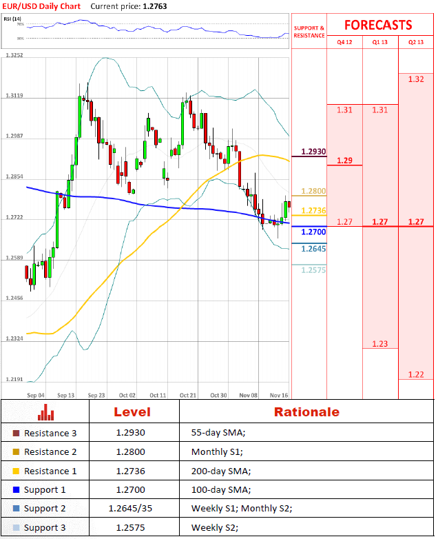 Pair's OutlookIn the morning of yesterday's trading session EUR/USD pair did some swings with bottoms slightly higher than the 200-day SMA and after this settlement above the moving average sharply advanced, making an intraday peak at 1.2801. However, yesterday's session closed at 1.2782, in the middle of the weekly PP 1.2762 and the monthly S1 at 1.2799. Currently, the exchange rate depreciates and it is very possible to see how the price retests the 200-day moving average from above.