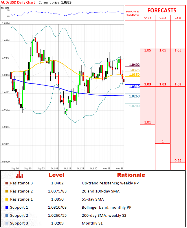 Pair is continuing its dip. At the beginning of the session it seemed it might recover some of the losses, but already 55-day SMA became an unreachable level for the pair. It pushed the pair, which is being held by Bollinger band at the moment, down by almost 50 pips. Outlook on the pair is neutral, therefore a lot of responsibility for keeping the pair stable stays on the Bollinger band. Otherwise, we could be certain to see additional dip to 1.0260.