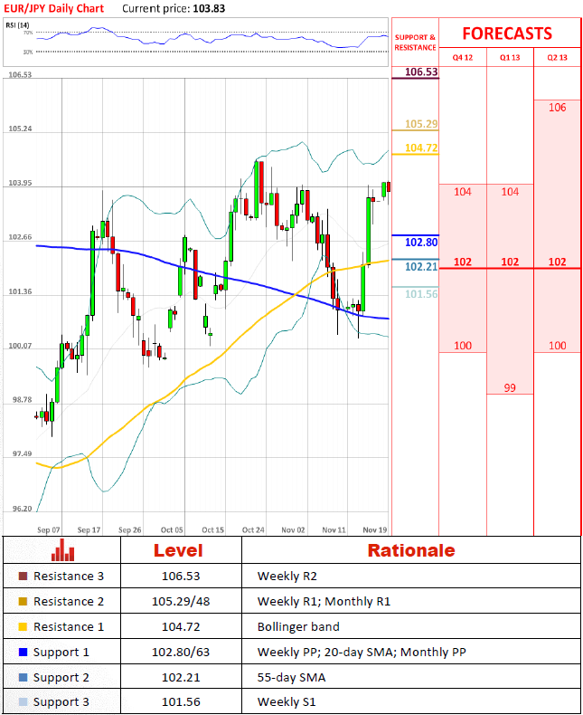 After a minor tip toe of 33 pips yesterday pair is hovering slightly below 104 JPY. It seems It is planning to stay there for some time more, but Stochastic indicator suggest pair is oversold and bearish dip is just around the corner. However, longer term technicals and support levels allow us to believe that dip should not be much further than 103 JPY.