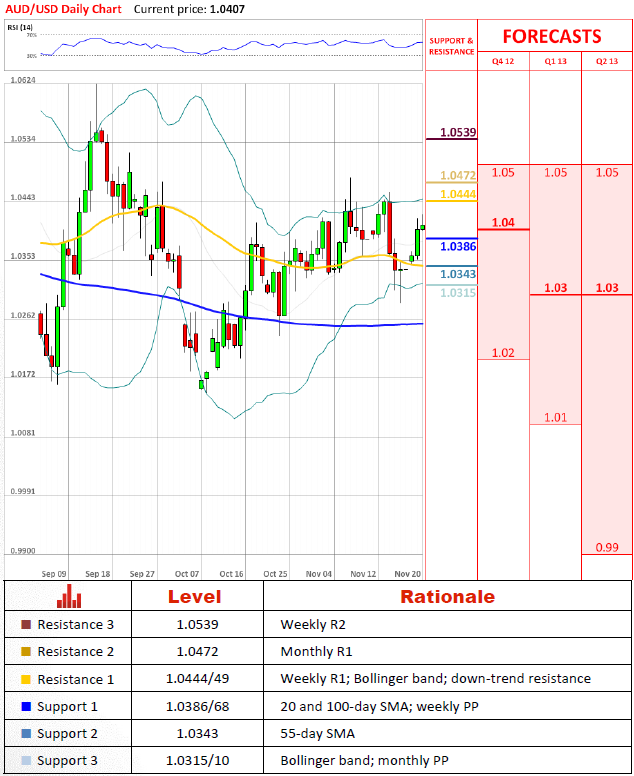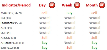On all relevant timeframes technical indicators suggest absence of any action by the price, which has moved only 10 pips since the start of the day, if we disregard shadows of the candle. Despite the outlook being currently neutral, the risk is to the downside, since fluctuations of AUD/USD are restricted by a major bearish trend-line at 1.0444/49 from above, while supports are deemed to be less reliable, having less confirmations.