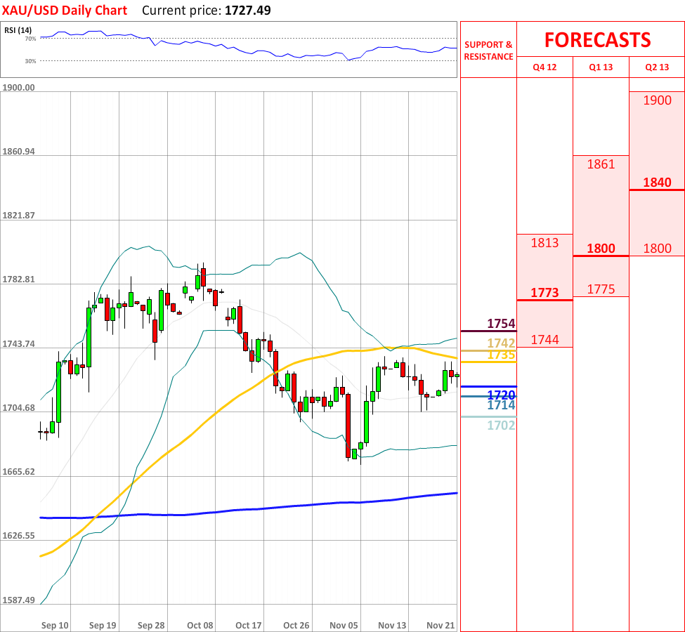 OutlookToday the XAU/USD exchange rate experienced a slight bullish correction, and at the particular moment the exchange rate is gradually approaching the weekly R1 at 1735, which is very likely to slow down the uptrend, however, if it fails to stop the bullish tendency, then the price will probably reach the 55-day SMA at 1742, which in turn is expected to reverse the current movement upwards. Additionally, RSI indicator shows a neutral signal, as well as the overall indicator outlook remains neutral.
