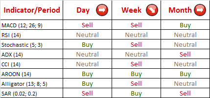 After three bearish days after unsuccessful attempt to advance above parity pair is posing for a rally, but is currently depressed under weekly picot (S1) at 0.9972. Stochastic indicator points at recovery of the pair suggesting a formation of head-and-shoulder sort of pattern. Such possibility (with eventual dip) is supported by weekly technical indicators.