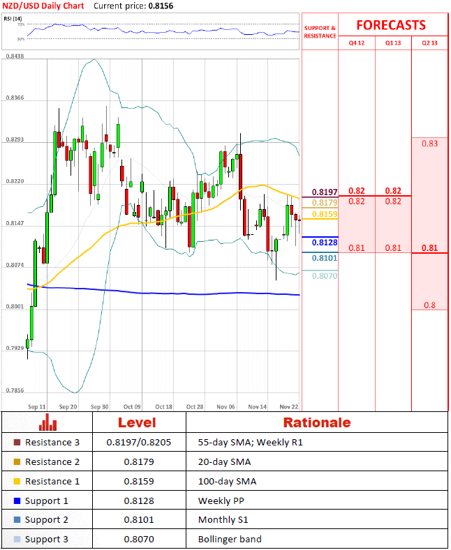 Pair started trading session with a dip, but managed to recover after receiving a bullish impetus from daily pivot (PP) at 0.812. However, future prospects of the pair look rather grim as both, technical indicators and market sentiment point at a depreciation of the pair. It is reasonable to anticipate a dip to 0.81; it is possible to see a dip to 0.805 if pair gains momentum as it did almost a week earlier.