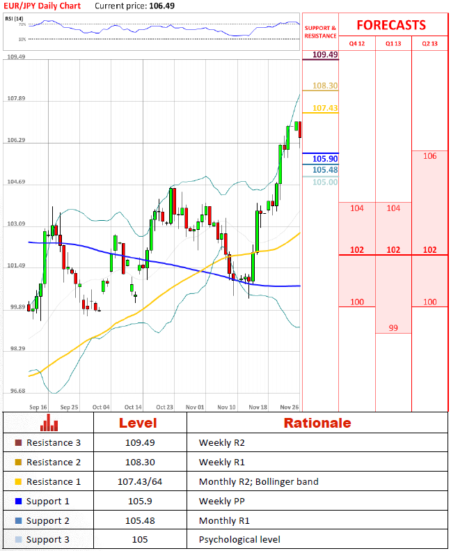 After posing for continuation of the last weeks rally pair dipped as it did nor manage to breach 107 JPY mark. Taking in to account recent developments, current market sentiment and readings of the stochastic indicator on 1D horizon it was rather evident that pair rocketed in to oversold area and we are likely to see a correction towards 106 and maybe to 105.5 fairly soon.