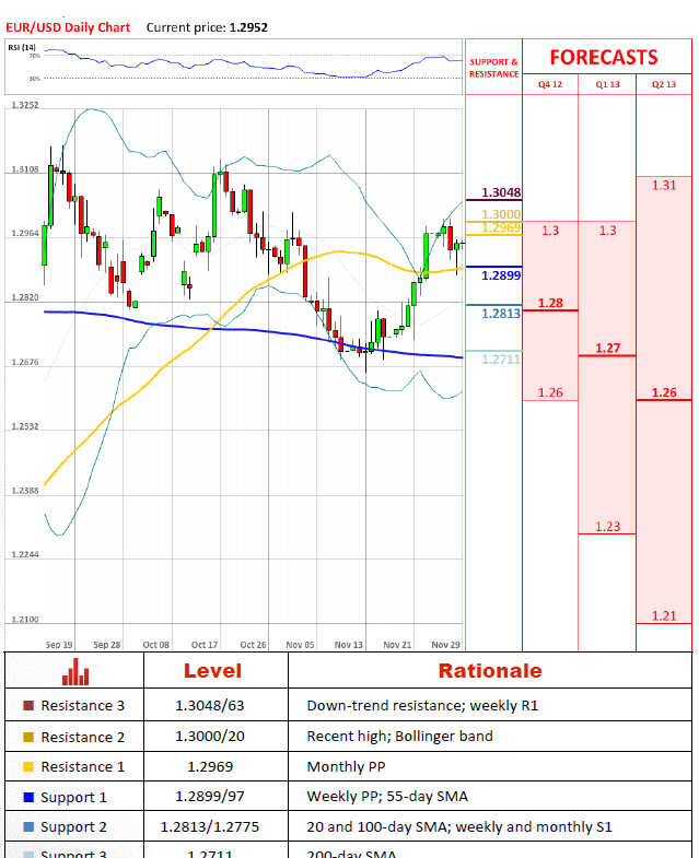 EUR/USD pair found a sufficient support around 1.29 level yesterday, as the price retreated from the 55-day SMA and the weekly PP. Currently, the major currency pair, fluctuates around 1.2950 and movement in both sides is very possible. If the price moves up, the first resistance will be 1.2970, the monthly PP, and the second will be 1.3030 area, where the upper Bollinger band and a downtrend line go. And if opposite scenario will take a scene and 1.29 level will be broken, should be reached 1.2820/1.2780 area, with S1 levels and the 100-day and 20-day SMAs.