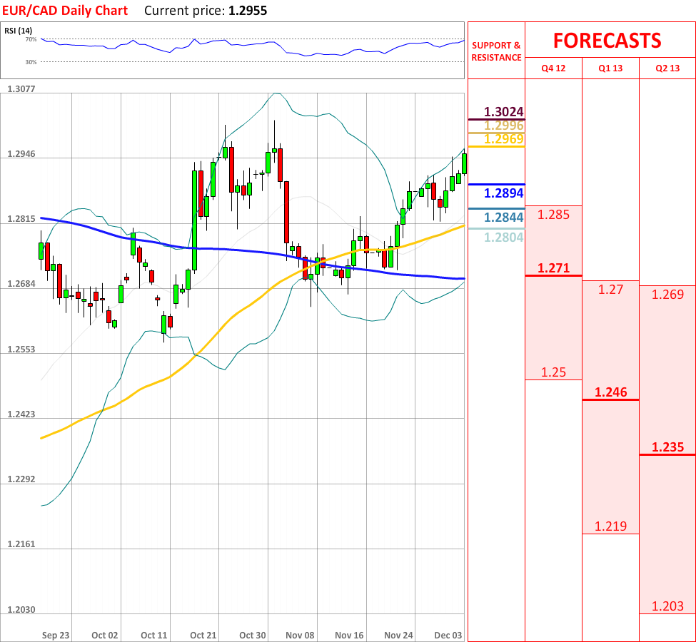 Today the EUR/CAD currency pair experienced another movement upwards, and at the particular moment the price is gradually approaching the weekly R1 at 1.2969, which will probably bring some bearish momentum, but in case it is breached, the currency couple is likely to reach the upper Bollinger band at 1.2996, which in turn is expected to change the direction of the prevailing tendency. Nevertheless, the overall indicator outlook is positive, therefore no trend reversals should occur in the nearest future.