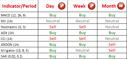 At some point pair was up by 75 pips today, but gave up the pace slightly before the first major resistance at 108.13 and has been range bound between 106.5 and 108 JPY for the past week. Technical indicators suggest pair will step up some more, however, it is rather important that both, on daily and weekly perspective, the Stochastic indicator sends sell signal implying pair has reached the limit of its upper potential.
